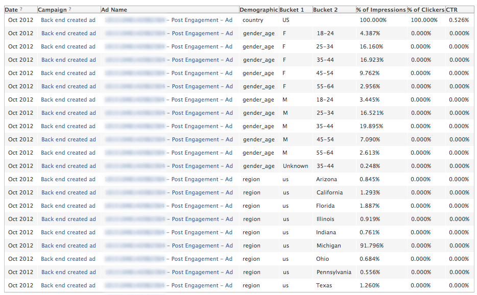 First, a qualifier: I find Facebook's ad management system incredibly convoluted and confusing. But I am a creative at heart, and navigating ad management systems has never been a particular strong suit of mine. If you find any errors or gaps in my interpretations of this data, please let me know; I'd be happy to hash it out in the comments section.